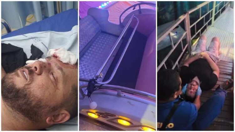 Devido a uma falha na trava de segurança do equipamento, o homem foi lançado para fora do brinquedo e teve várias e graves lesões