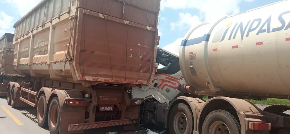 O acidente envolveu quatro carretas e um carro de passeio. A pista ficou totalmente interditada.